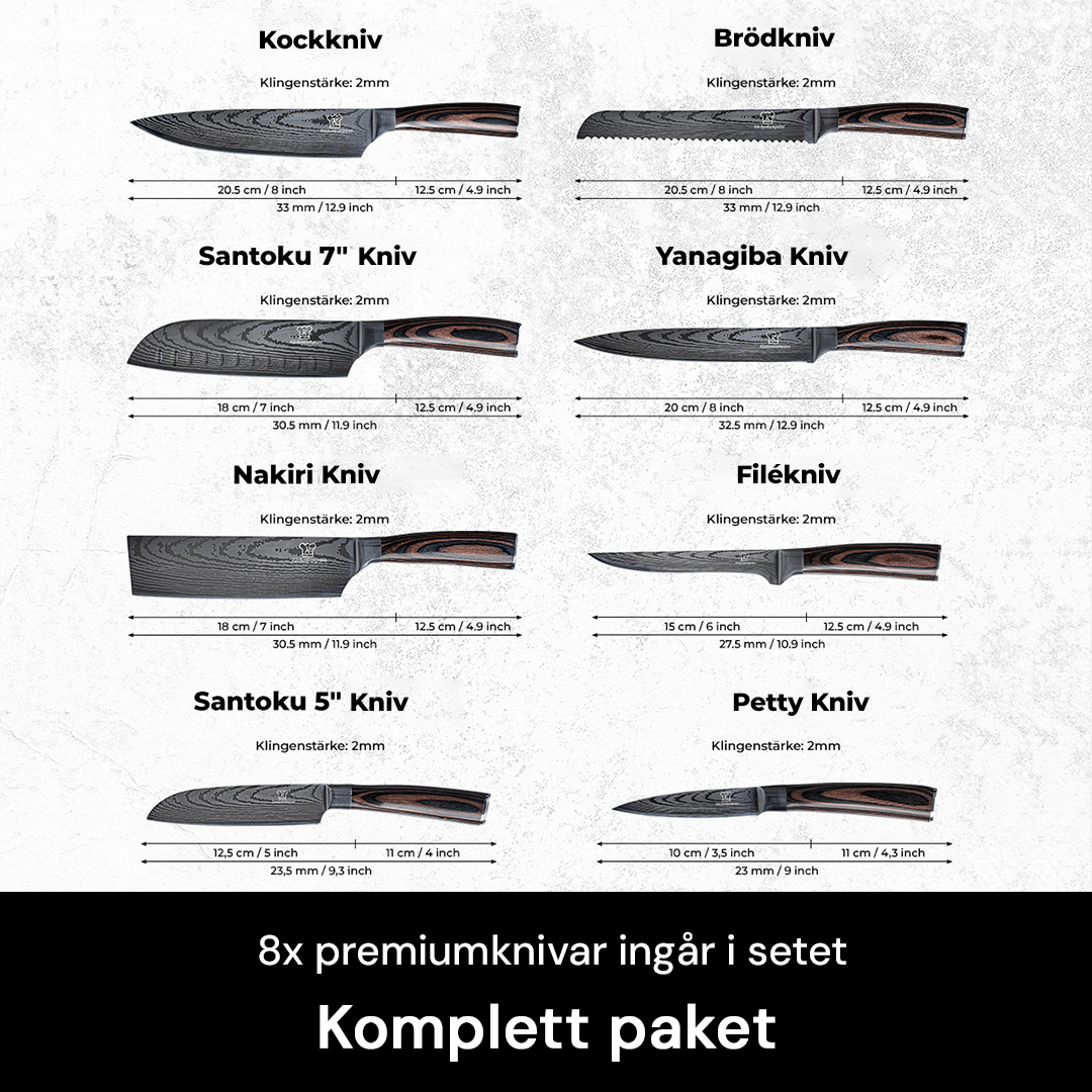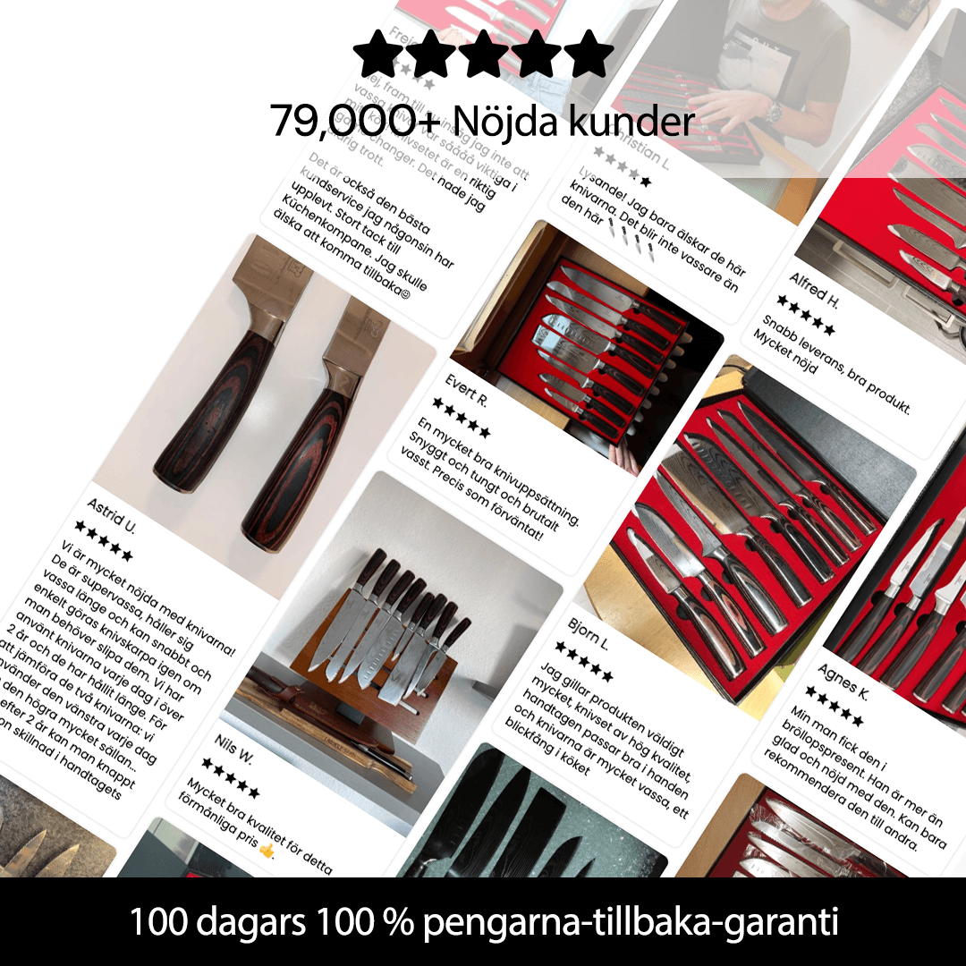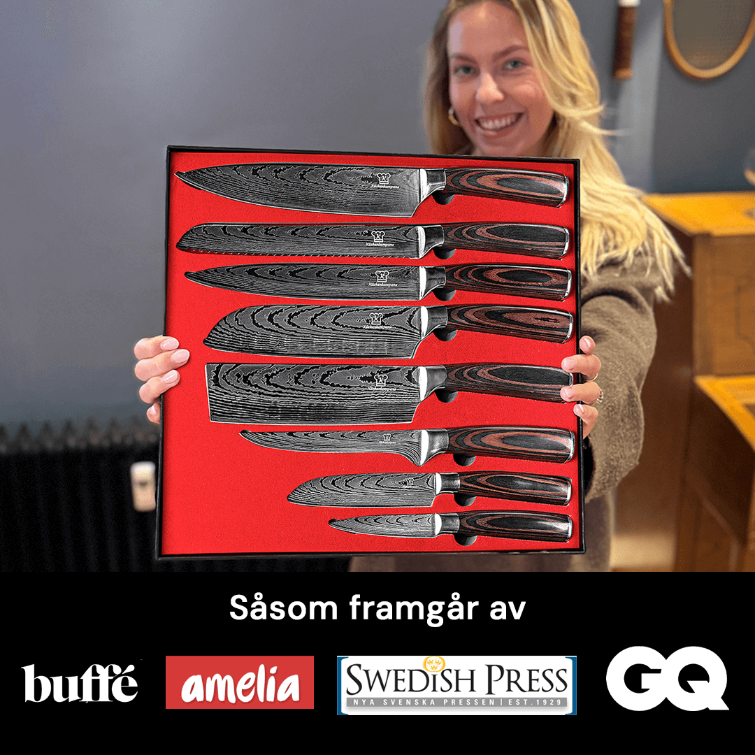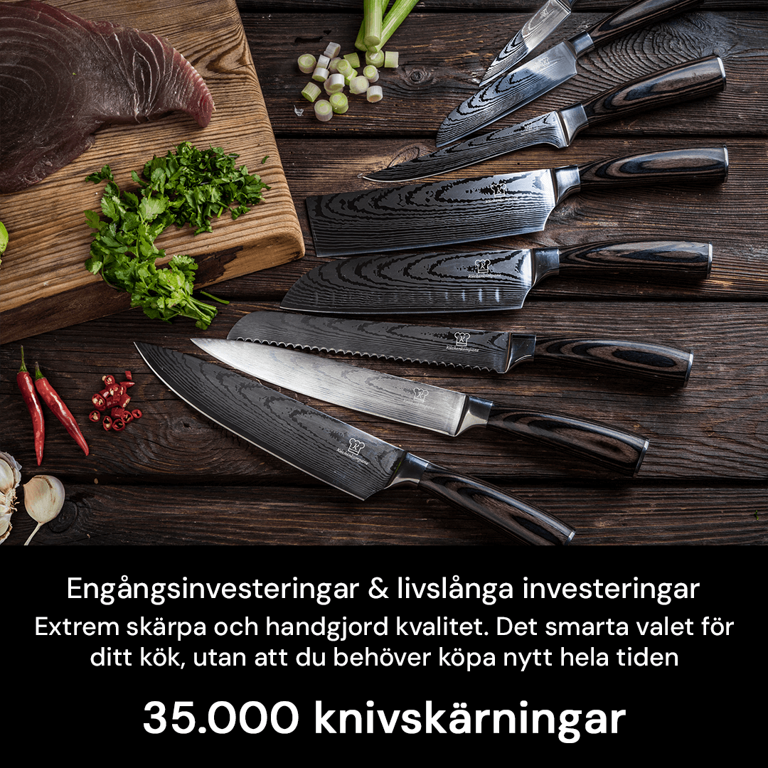 Vårt exklusiva knivset erbjuder överlägsen skärpa och hantverkskvalitet. Ett smart val för ditt kök – utan att du ständigt behöver byta knivar!