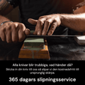 Slipa din kniv gratis! När du köper får du en gratis 365-dagars slipservice. Skicka in den när den blir slö – vi återställer den till sin ursprungliga skärpa. Du betalar bara fraktkostnaden.